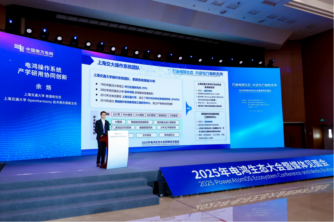 12月30日,以“打造电鸿生态,共绘电力物联未来”为主题的2025年电鸿生态大会暨媒体见面会在北京人民日报社举行。大会由中国南方电网有限责任公司主办,南方电网数字电网集团有限公司、南方电网数字电网研究院股份有限公司承办,近400名来自政府部门、行业组织、能源企业、高校及产业链创新链伙伴的代表参会,共绘开放协同的能源数字化蓝图。会上隆重举行了开放原子电鸿开源社区工作委员会成立仪式、电鸿开源项目贡献仪式和“电鸿生态之星”颁授仪式,标志着电鸿开源社区进入协同发展新阶段。