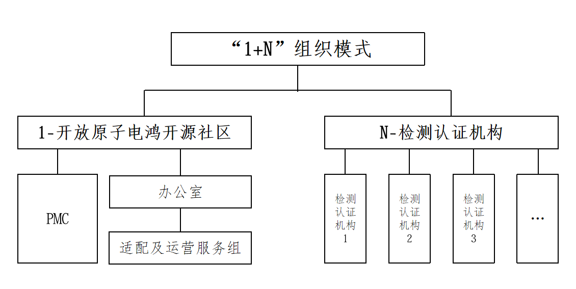 构建“1+ N”电鸿兼容性检测认证组织模式,以电鸿开源社区为治理主体,授权多家第三方专业机构具体执行,形成层级清晰、协同高效的组织体系。